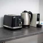 Насладитесь комфортом ванной комнаты апартаментов, которая оснащена полотенцами.
